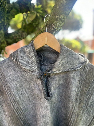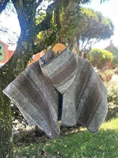 Ruanita en lana industrial, con gorrito, que la hace mas abrigadora. Tejida con mucho amor y dedicación, por artesanos nobsanos. Las medidas de la ruanita extendida son de 40 cm de ancho x 80 cm de largo.